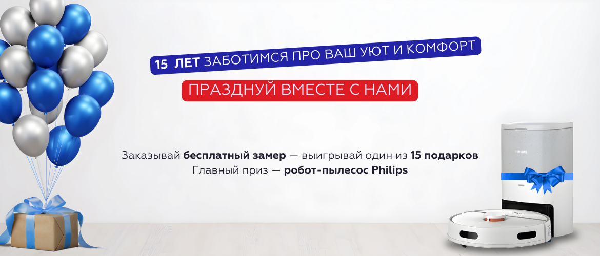 В честь этой знаменательной даты разыгрываем 15 подарков. Главный подарок – робот-пылесос Philips.
