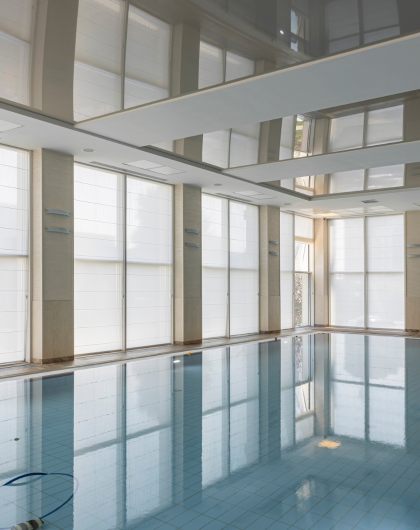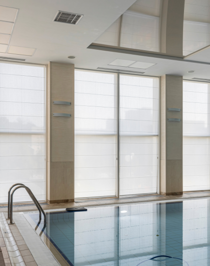 Римські штори в фітнес-клуб: в приміщення з басейном (1 фото)