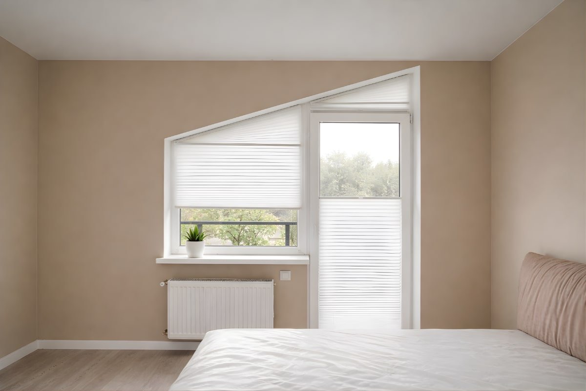 - Большой выбор материалов: можно подобрать шторы-плиссе для любого интерьера.