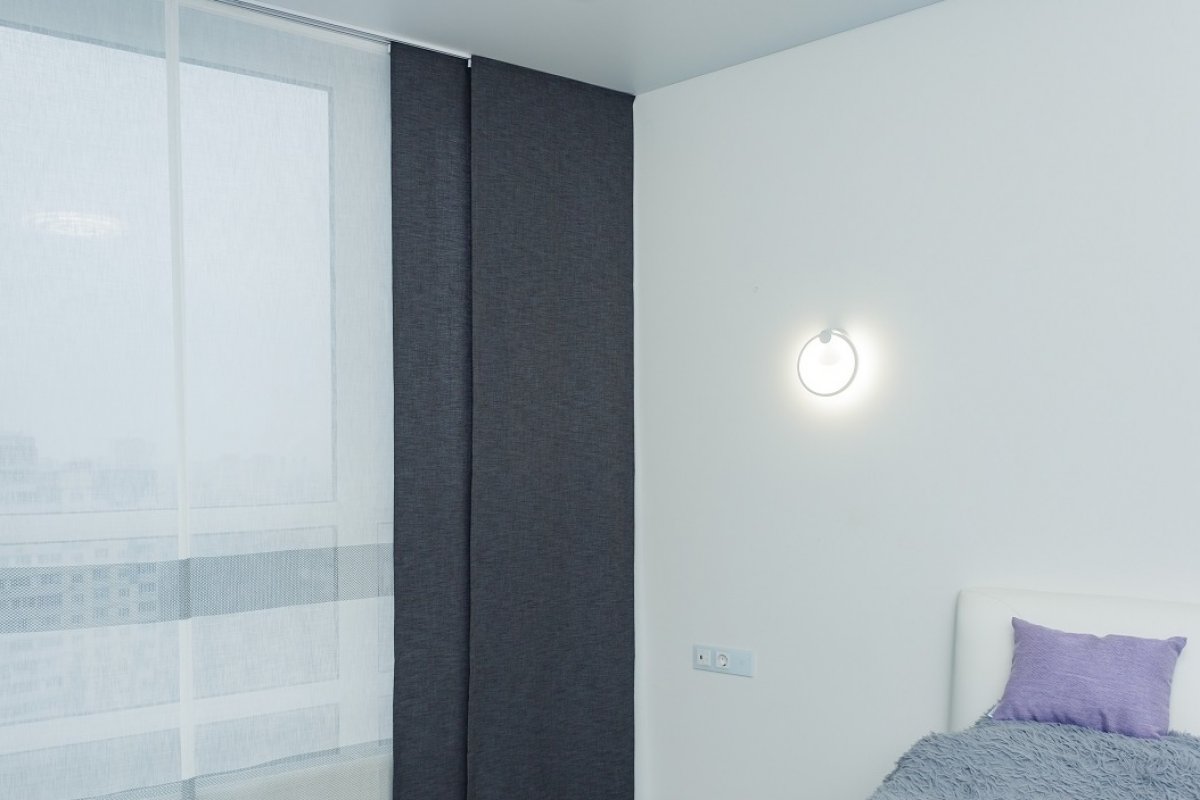 В верхней и нижней части японских штор есть специальные планки, благодаря которым на ткани не образуются складки.