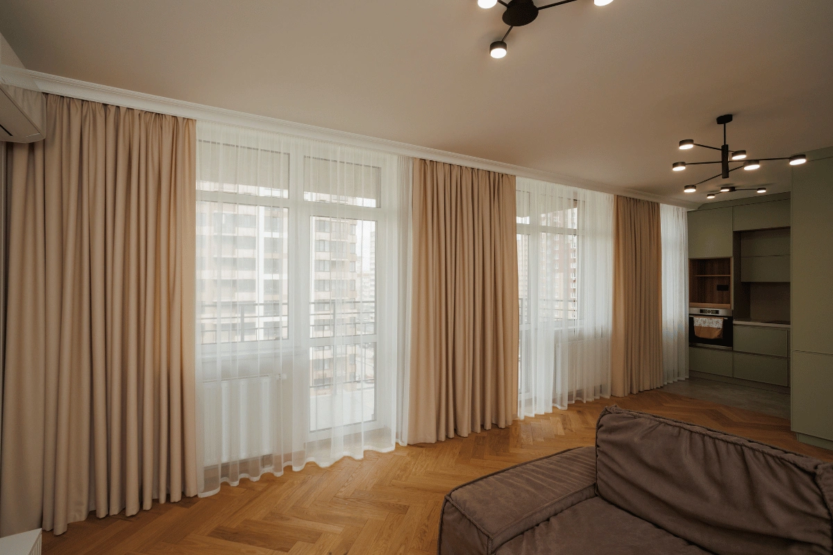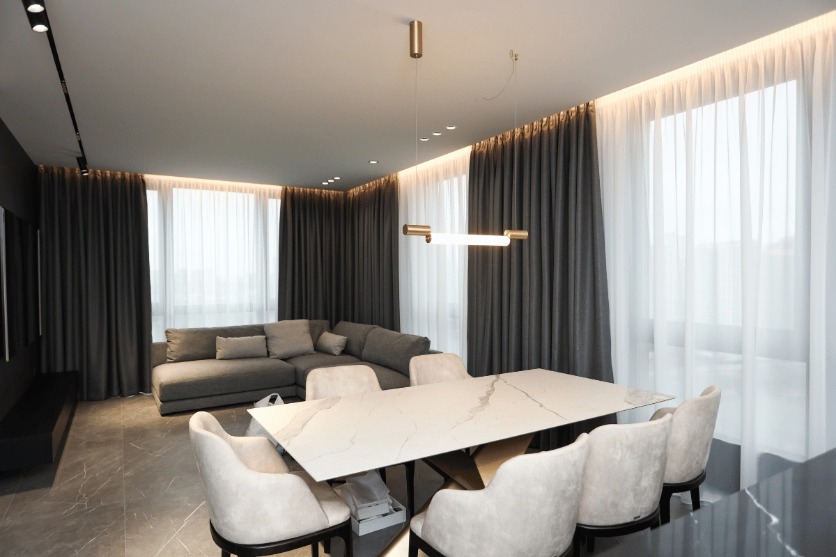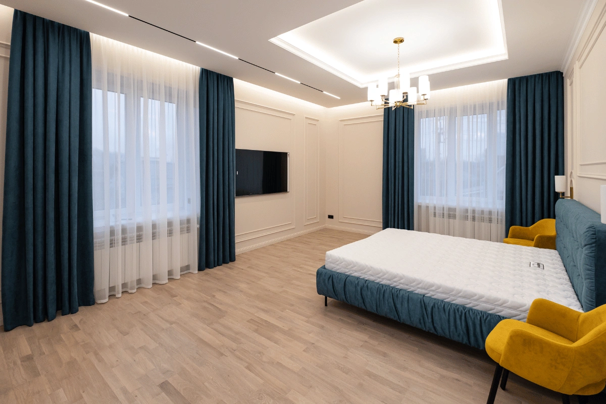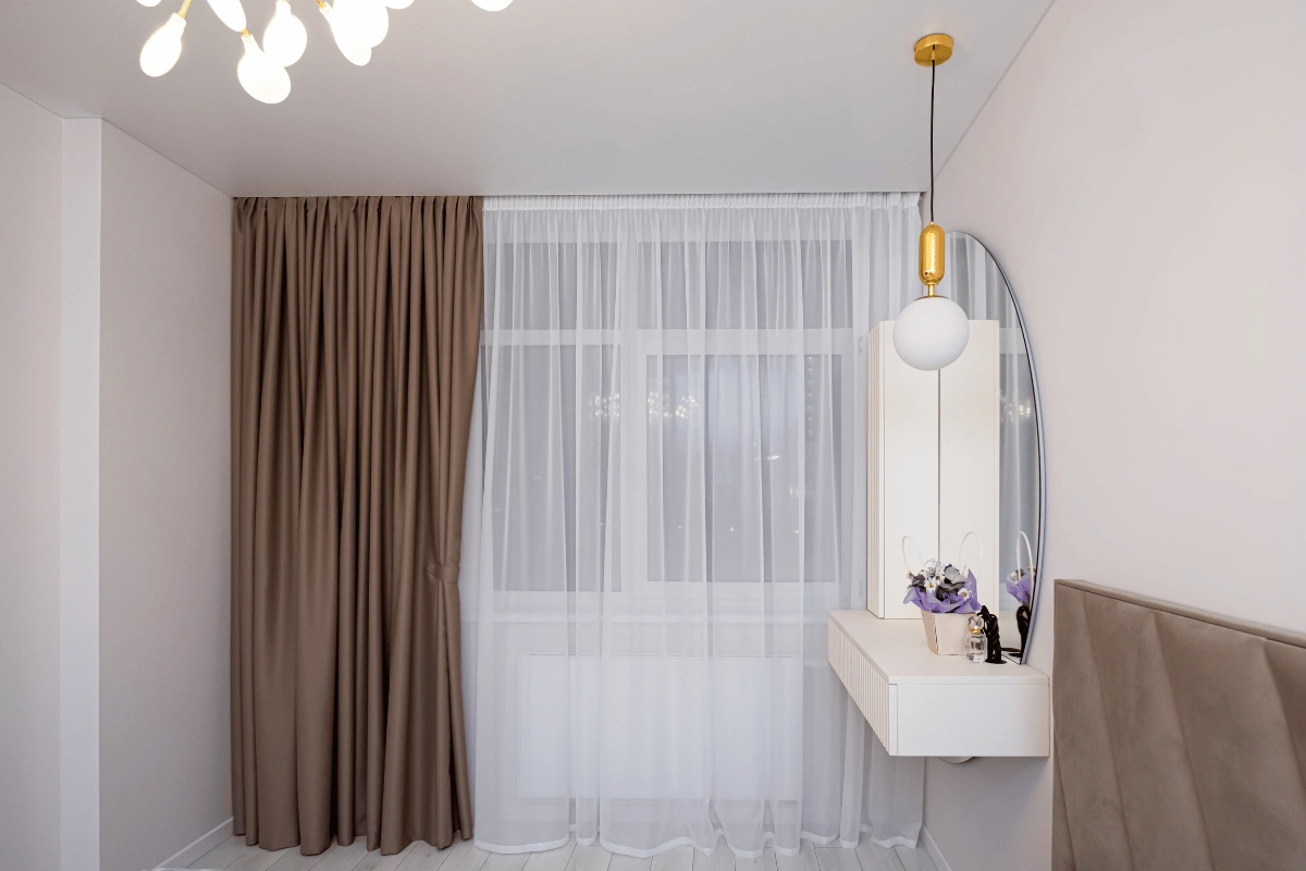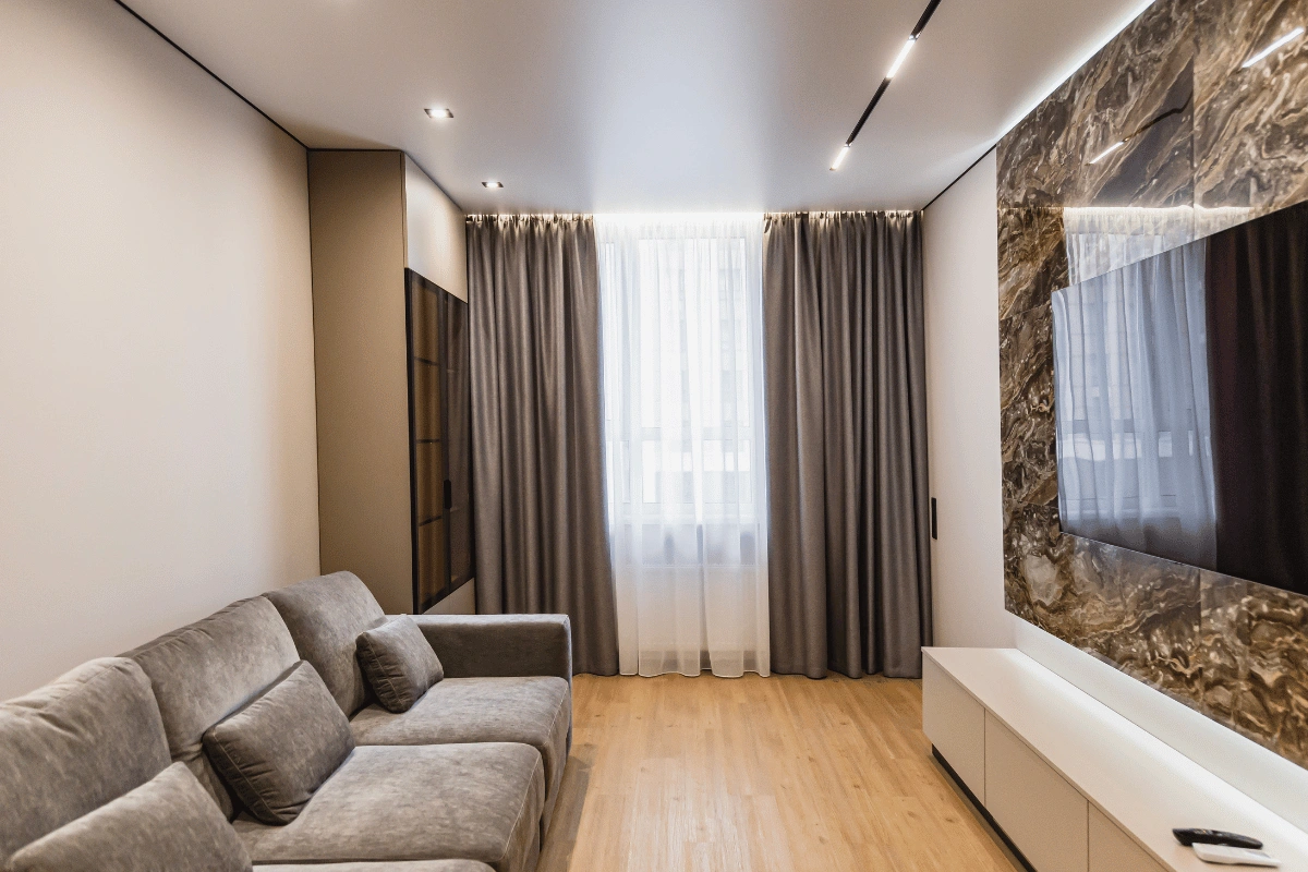 - Точність до міліметра: врахування отворів, стелі, типу монтажу, способу драпірування, розташування меблів