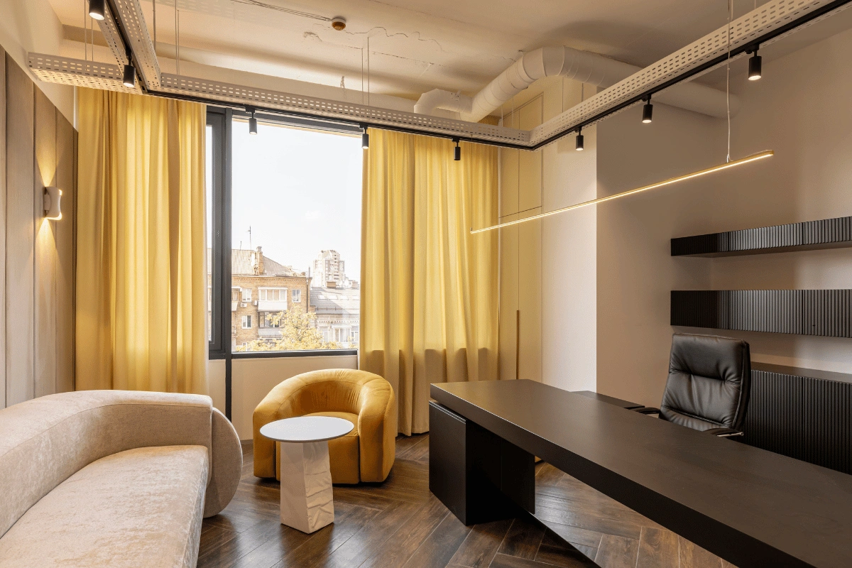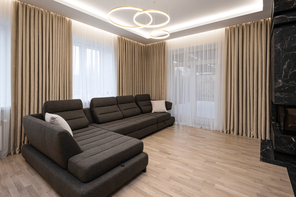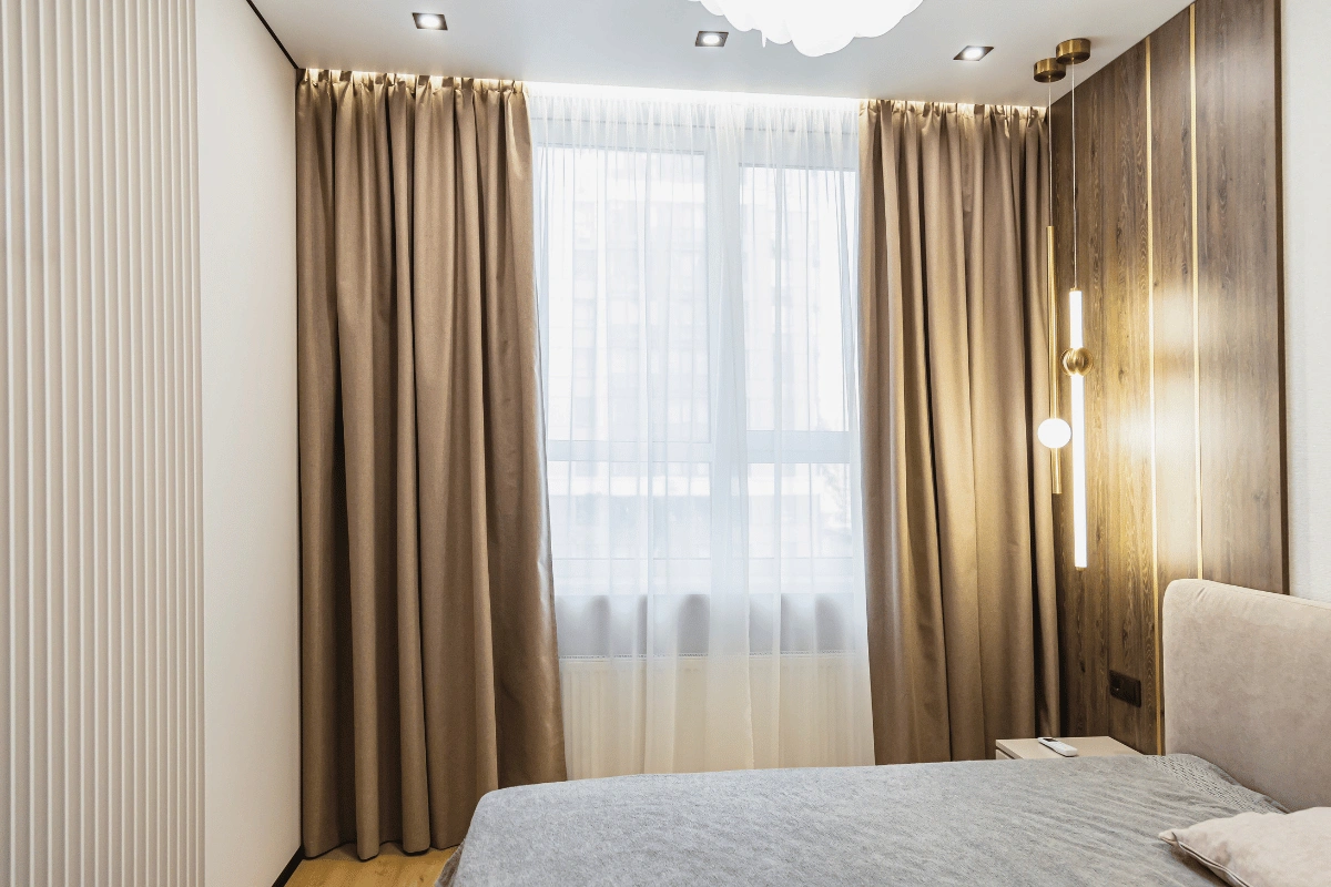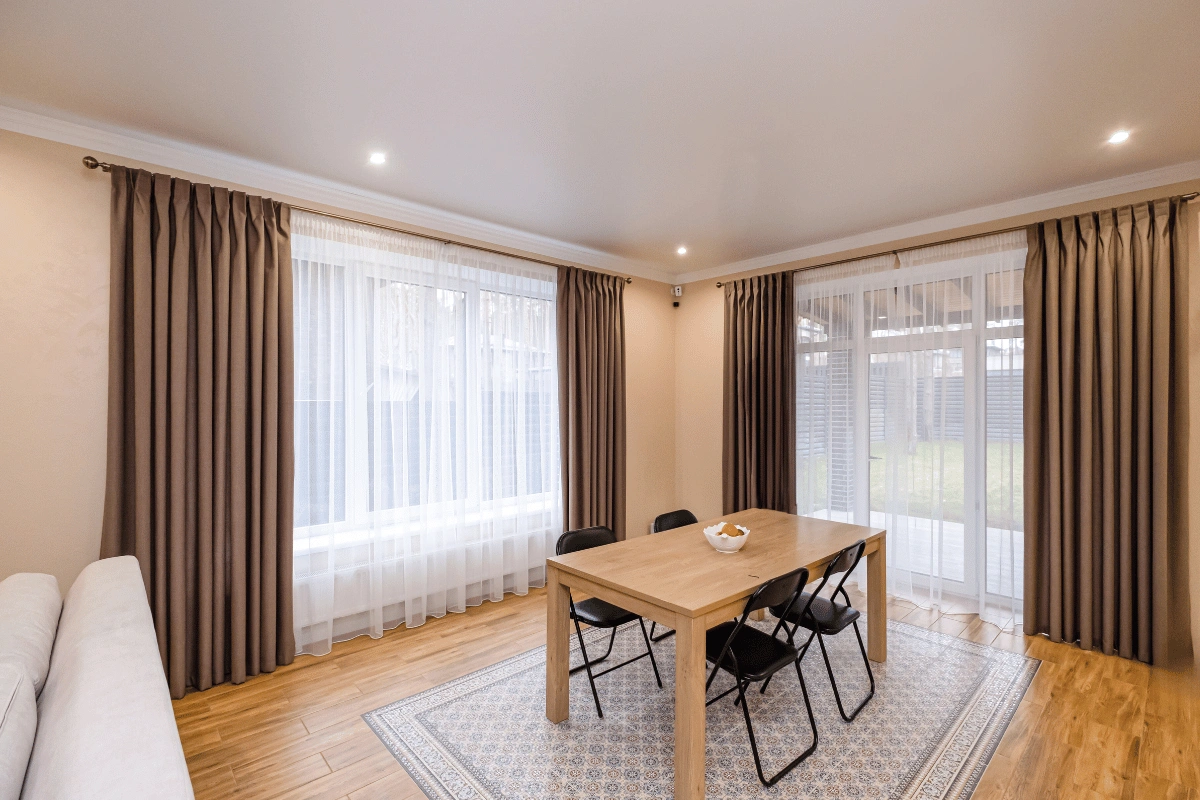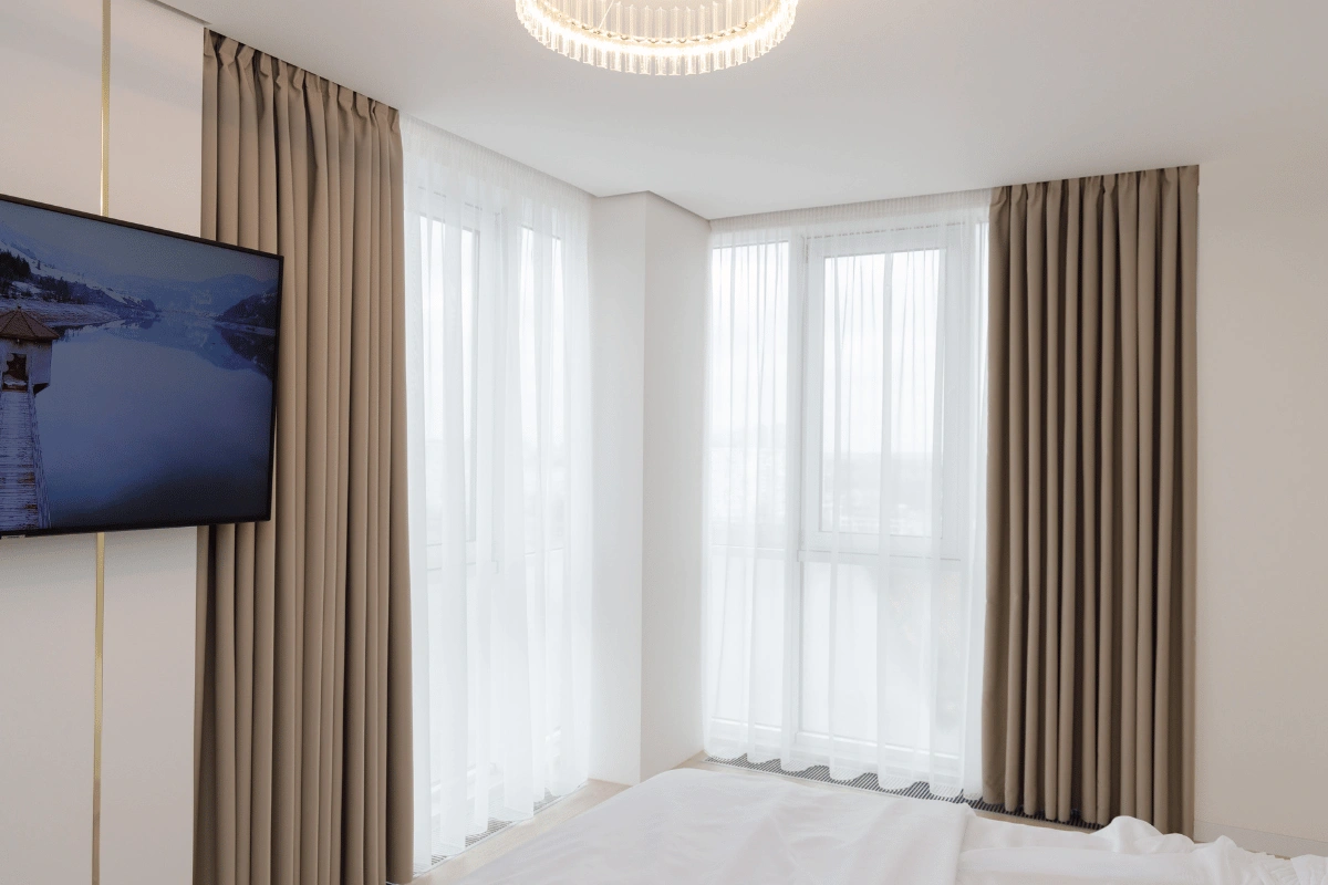 - Точність до міліметра: врахування отворів, стелі, типу монтажу, способу драпірування, розташування меблів