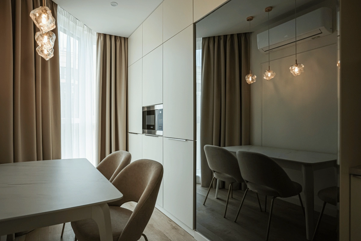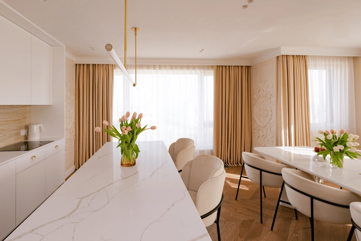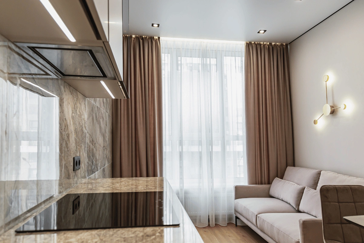 - Врахування деталей: висота стелі, форма вікна, розташування техніки, ніші, меблів