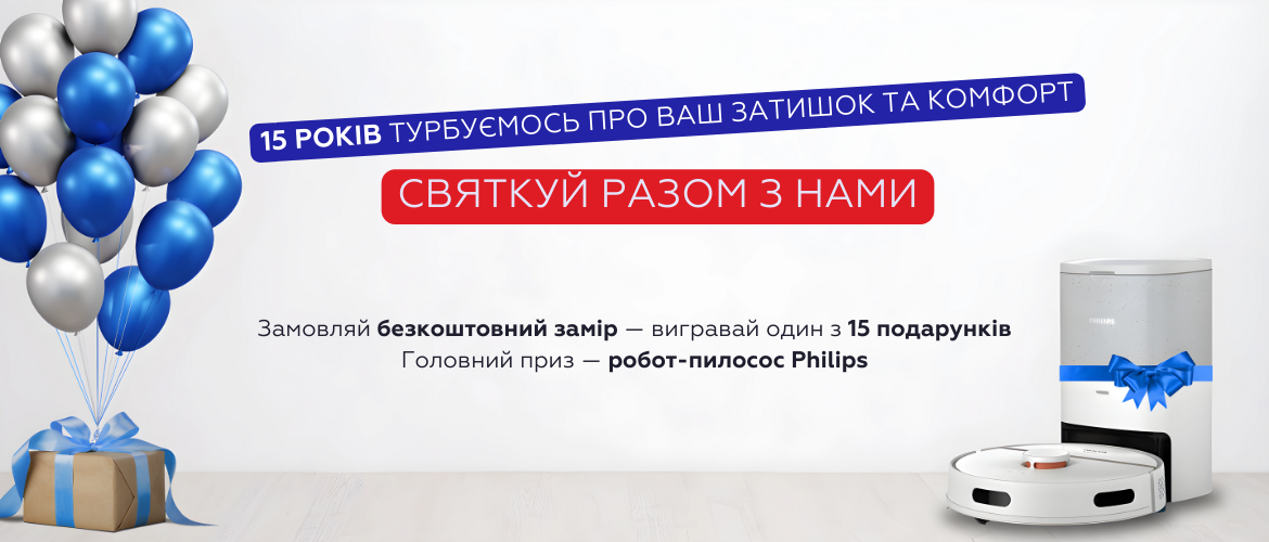 З цієї нагоди розігруємо 15 подарунків. Головний подарунок – робот-пилосос Philips.
