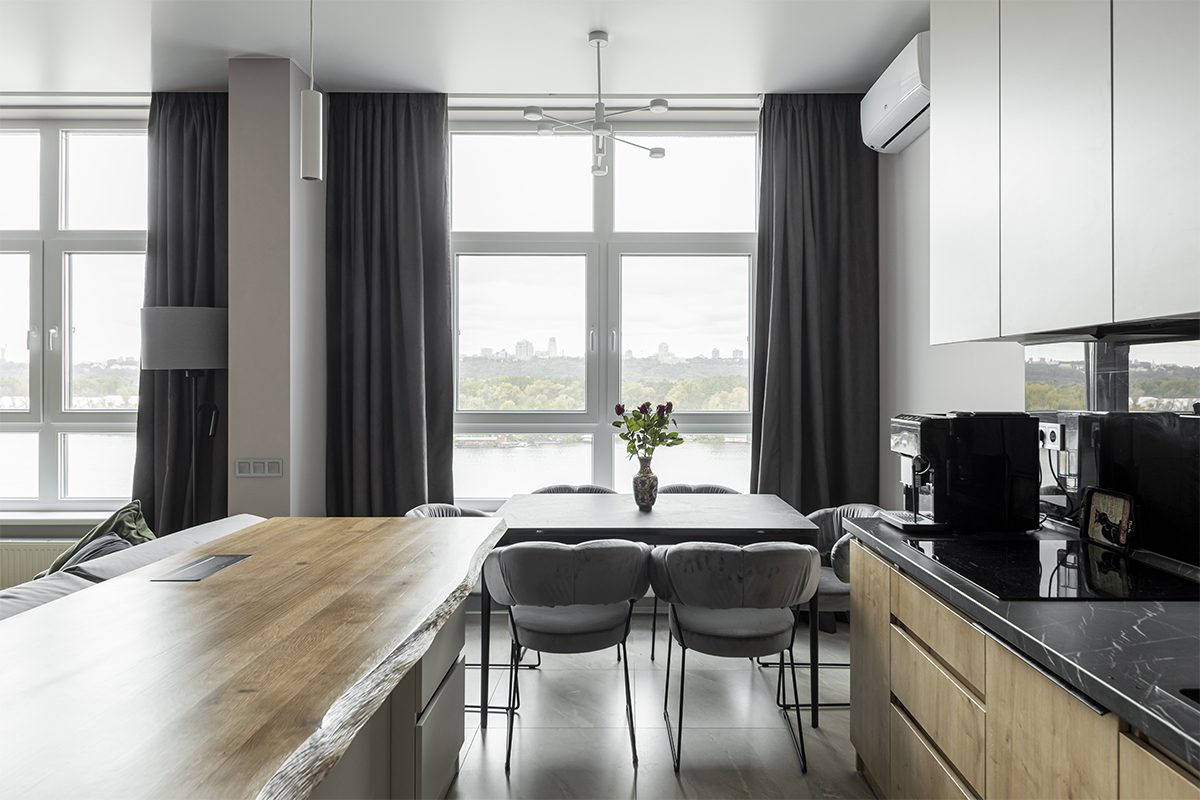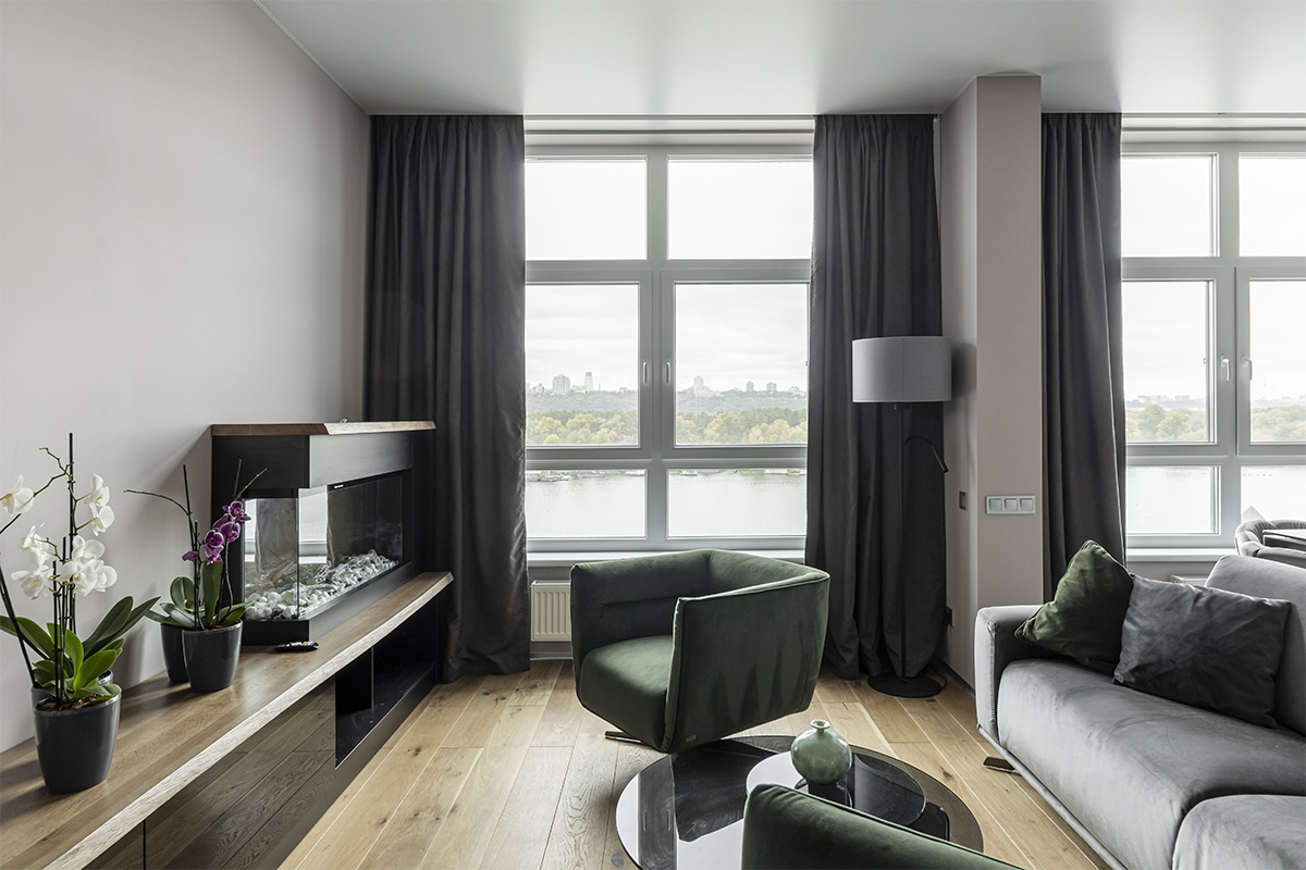 Чорні штори в сучасному інтер’єрі Києва: сміливий текстиль зі смаком.