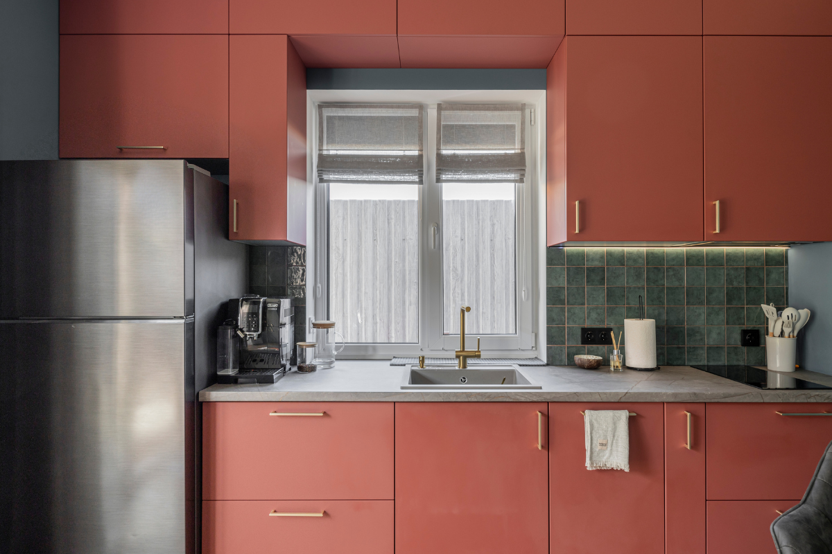 Друга важлива перевага — простота догляду. Римські штори легко знімаються для чищення, і їх можна прати або витирати вологою ганчіркою. А для кухні це дуже актуально, де не вдається минути плям та бризків під час приготування.