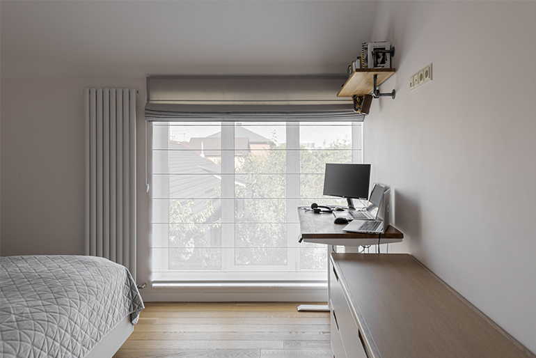 В спальню краще всього підходять варіанти римських штор із тканин Dimout та Blackout, які забезпечать вам комфортний відпочинок та солодкий сон.