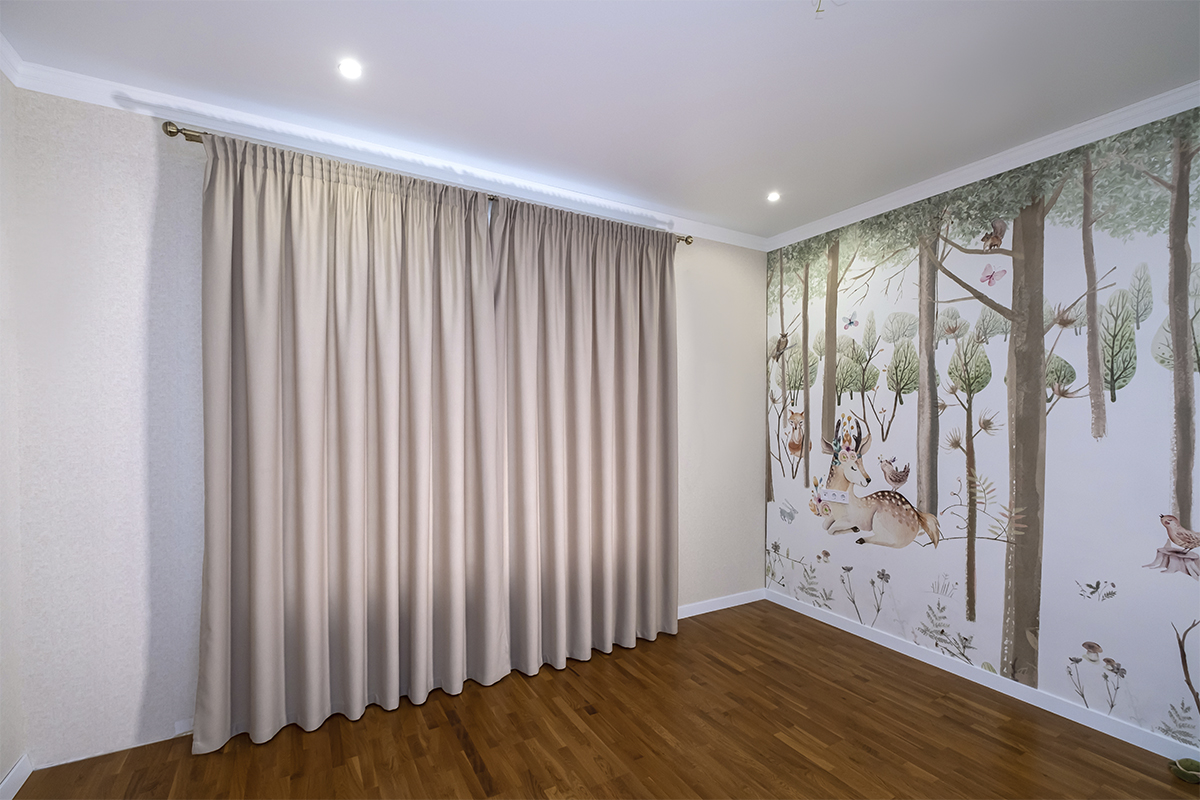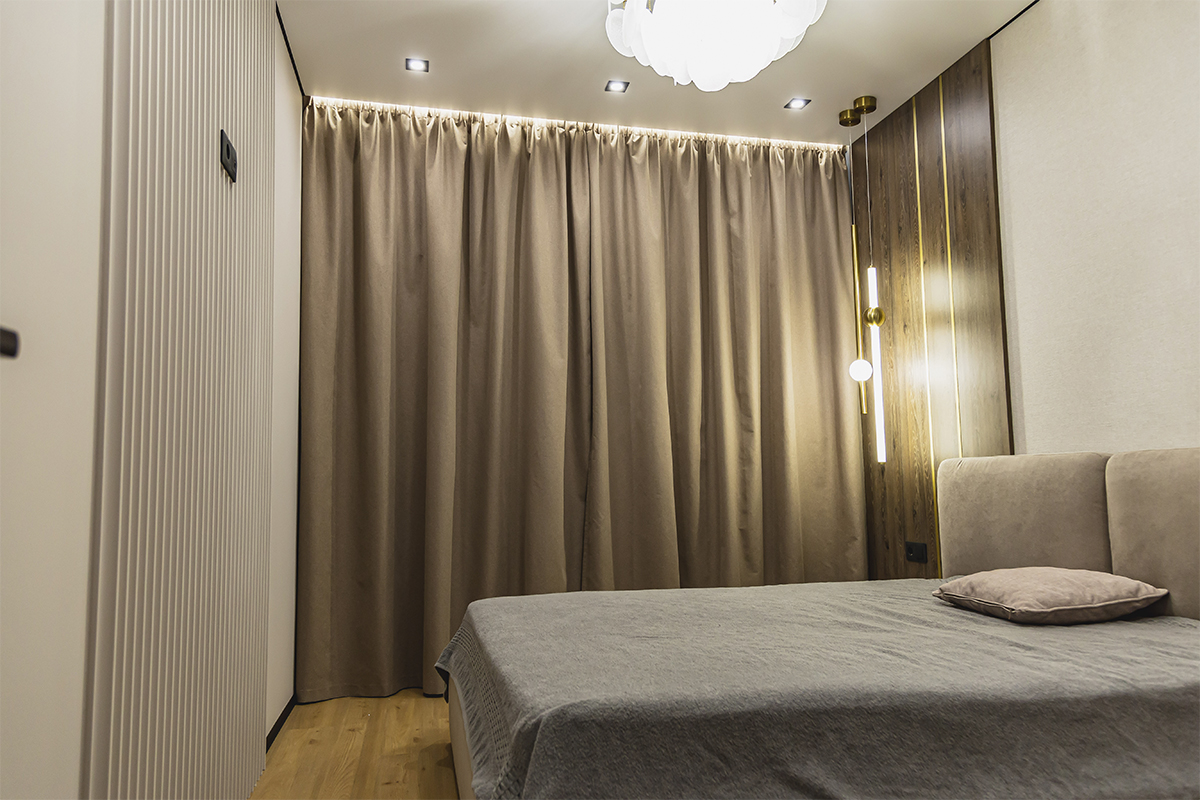 - Спальня. Щільні штори варто купити для кімнат, де важливо зберігати тишу, рівновагу. Вони допоможуть вам розслабитися перед сном або створять умови для денного відпочинку (після нічної зміни чи з графіком, коли є малеча).