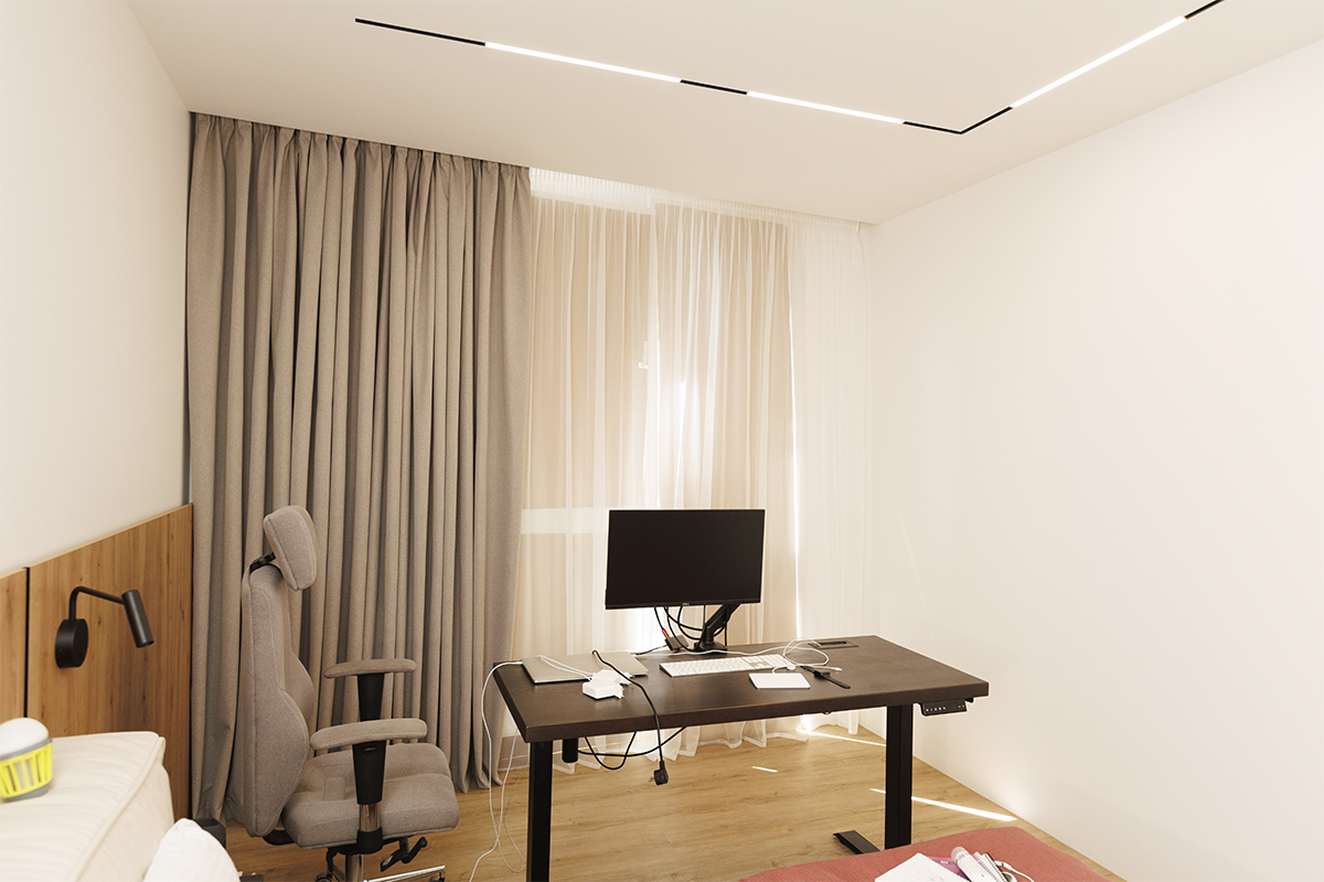 - Офіс або кабінет. У робочих зонах бежеві штори сприяють концентрації, не відволікаючи уваги та допомагаючи підтримувати порядок і організованість.