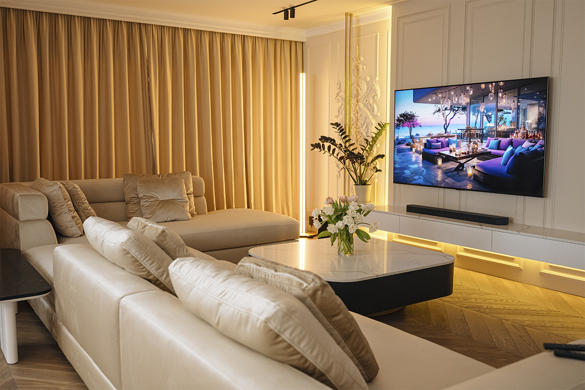 - Вітальня. У просторих вітальнях Києва допомагають зробити комфортну, затишну атмосферу, яка сприяє відпочинку й теплому спілкуванню.