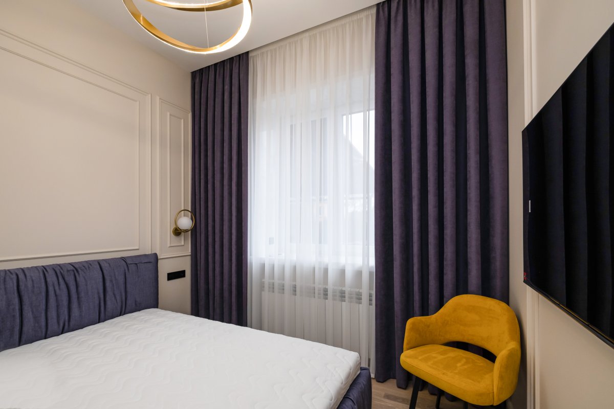 Колір стиглої сливи чи ранньої лаванди символізує розкіш, спокій, творчу енергію, отже, ідеально підходить для креативних просторів і місць, де цінується можливість відпочити від шумного Києва. Штори фіолетові однотонні додають інтер’єру мінімалізм, який став трендом у наш час, а варіанти з текстурою чи візерунками допомагають створити камерну атмосферу.