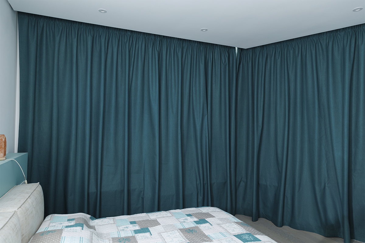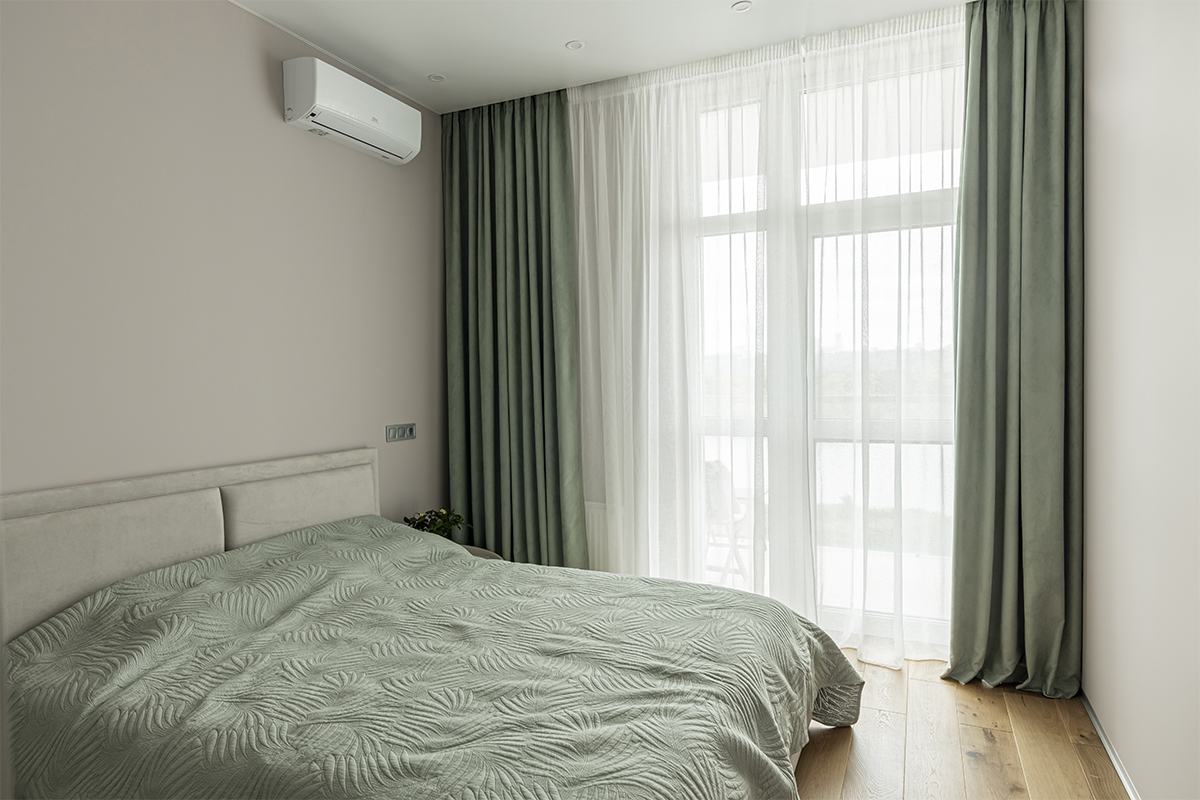 1. Спальня. Щільні порт’єри, зокрема тканина блекаут, створюють спокійну, атмосферу, що допомагає розслабитися, налаштуватися на відпочинок після робочого ритму та часу в дорозі в Києві. Темніші відтінки, такі як смарагдовий або оливковий, допоможуть зробити простір затишнішим.