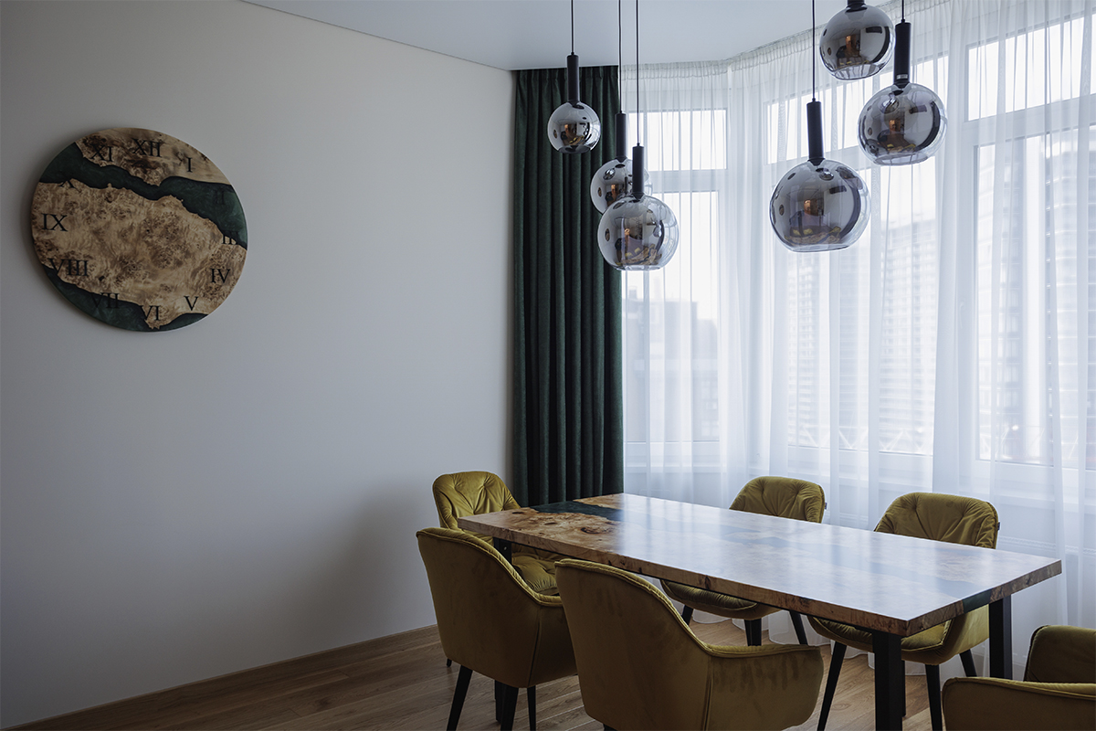 3. Кабінет. Для робочого простору зелені штори сприяють концентрації уваги, продуктивності та зняттю стресу. У ритмі Києва і сучасних реалій – це актуально. Ті, хто цінує спокійні, врівноважені відтінки, вибирають оливкові або темно зелені фіранки.