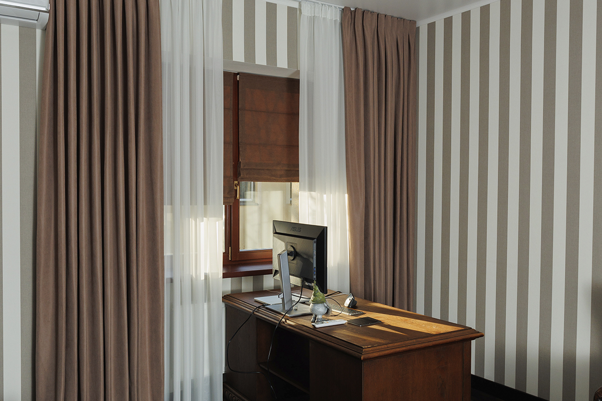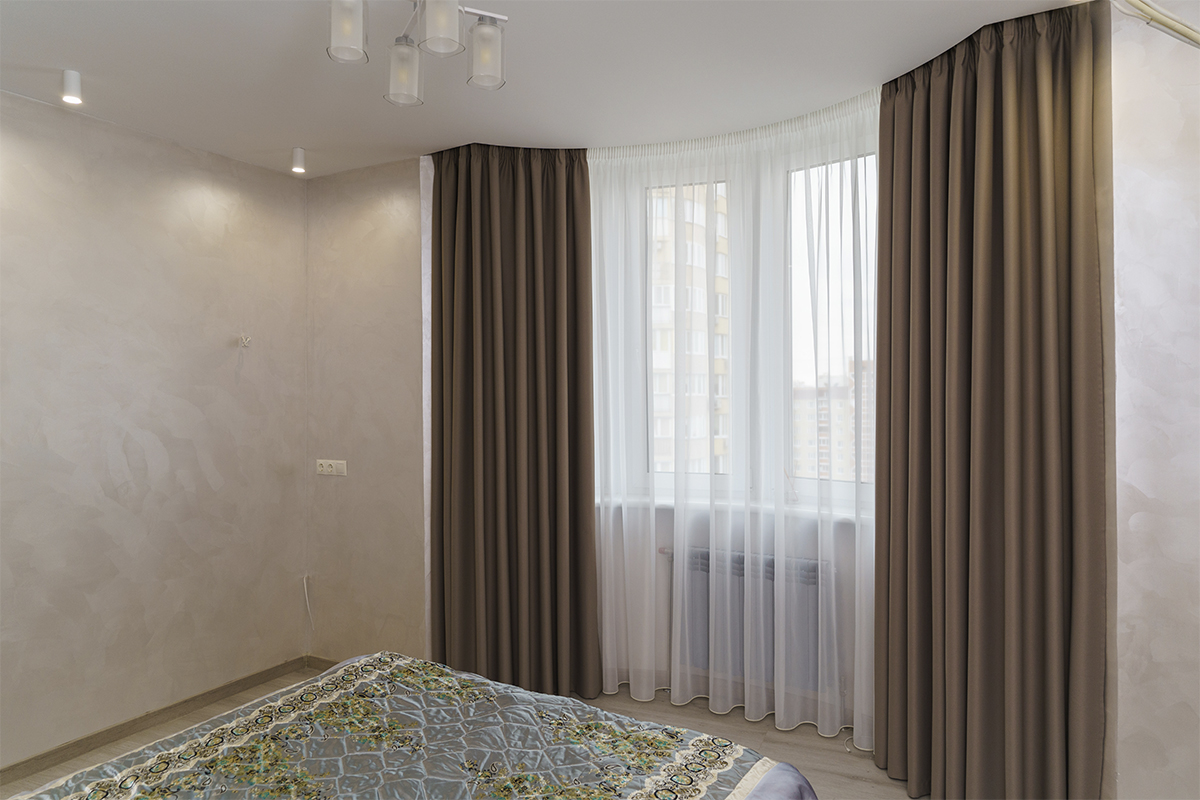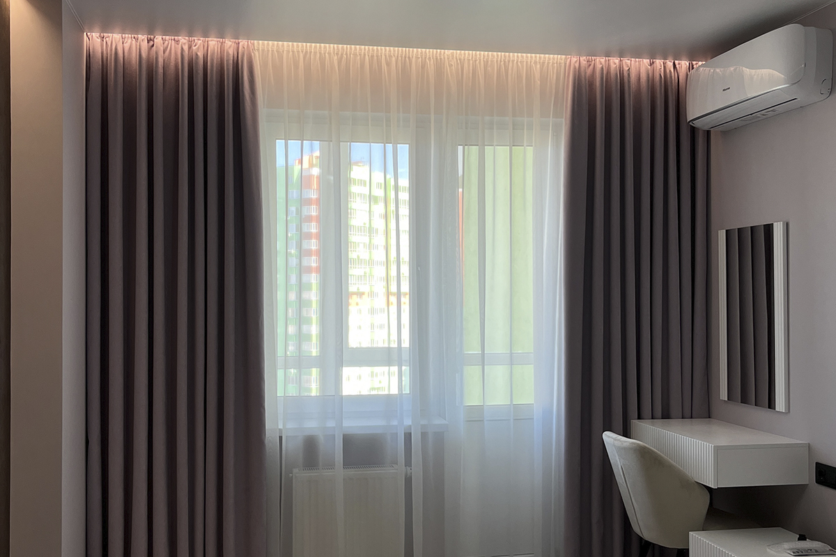 Пошив під замовлення — найкращий варіант, адже ви отримуєте сучасні сонцезахисні вироби саме під свій простір, з урахуванням специфіки стіни, кріплення карнизів, наявності тюлю і т.д.